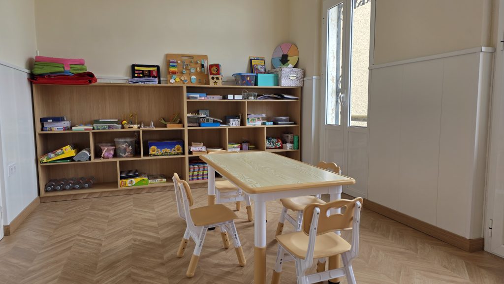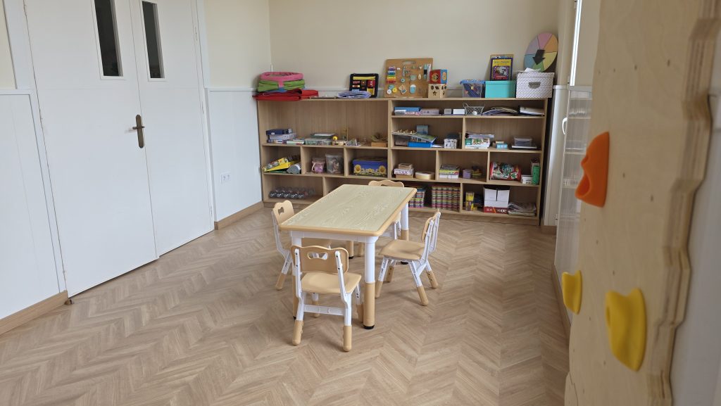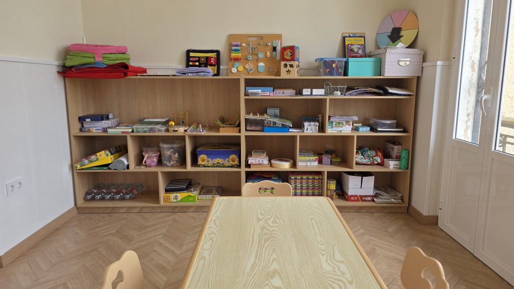 Hemos creado una nueva aula de metodología Montessori, completamente reformada, con suelo de parqué y equipada con todos los materiales propios de esta metodología.